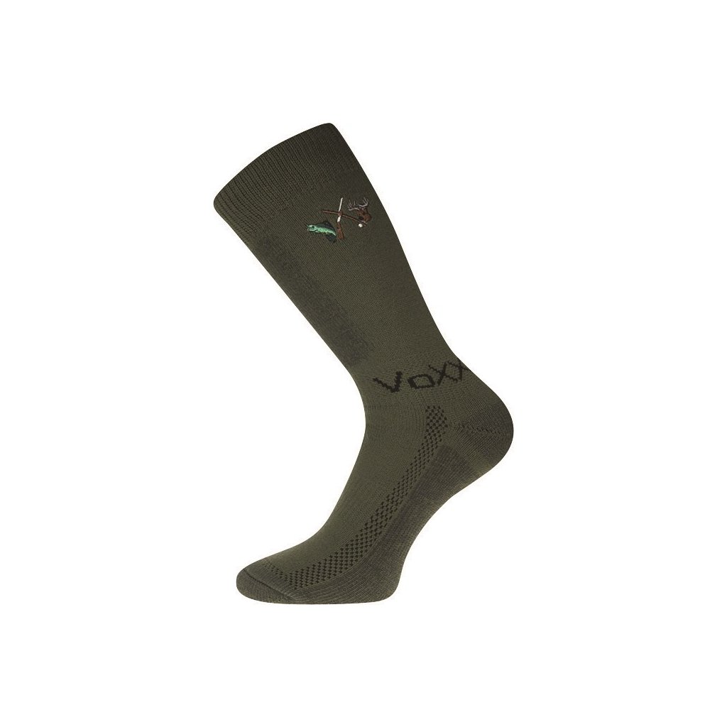 Anatomické tvarování na levou a pravou nohu udrží nohy neustále v pohodlí i při náročném a dlouhotrvajícím pohybu. Polstrované froté zabraňuje otlakům, extra volný lem neškrtí. Lovecké ponožky v zelené barvě jsou zdobené tématickou výšivkou. Teplé ponožky v teplotní třídě C až do teploty -20°C jsou ideální pro pohyb v přírodě. Navíc dostupné i nadměrné velikosti.